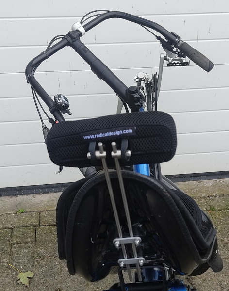 The cushion used is specially made by Radical Design, the renowned manufacturer of high-quality recumbent bike bags. It's easily removable, so you can wash the cover if it gets dirty.