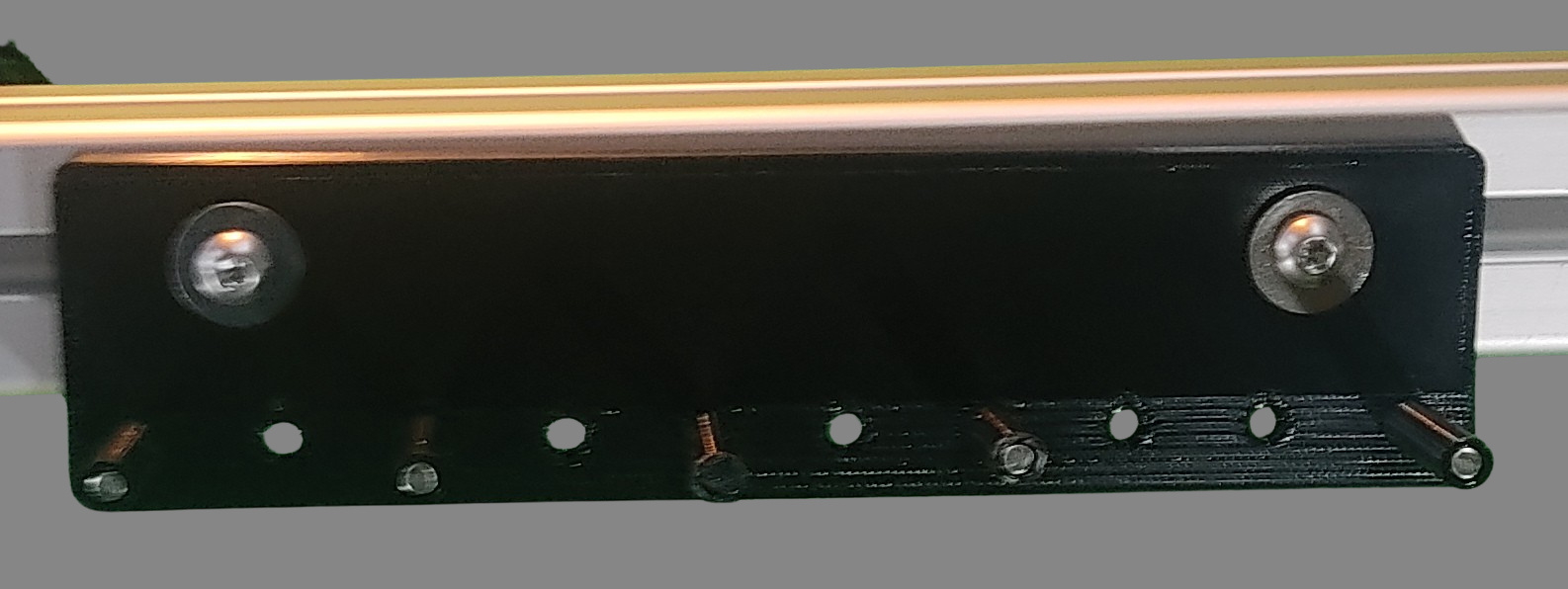 With this holder you can easily store pliers and wrenches on your stand. You mount the holder using the 2 m6 slide-in nuts with bolts m6x16 and washers. The 5 M5x 35 bolts are screwed through the holder on the flat side. Then you can turn the shielding sleeves over the bolts. You can choose from 10 places where you can mount them. This way you can always find a handy layout.